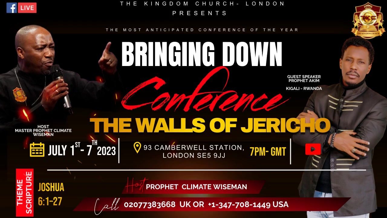 * Join Us at the Most Anticipated Conference of the Year! * Theme: Bringing Down the Walls of Jericho Dates: July 1st, 2023 - July 7th, 2023 Dear Friends, We are thrilled to invite you to our annual conference, an event that promises to be the highlight of the year! Prepare for an incredible journey …